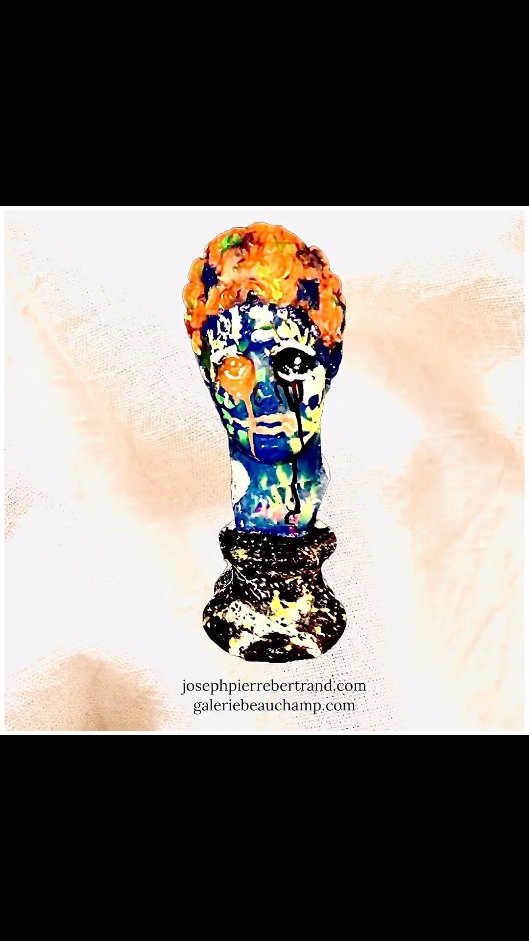 À droite sur un fond ensoleillé. Je représente un monde de terreur, un monde d’anonymat où les guerres sont incrustées. L’homme insatiable préfère exploré l’univers donnant le signe d’abandonner la planète.